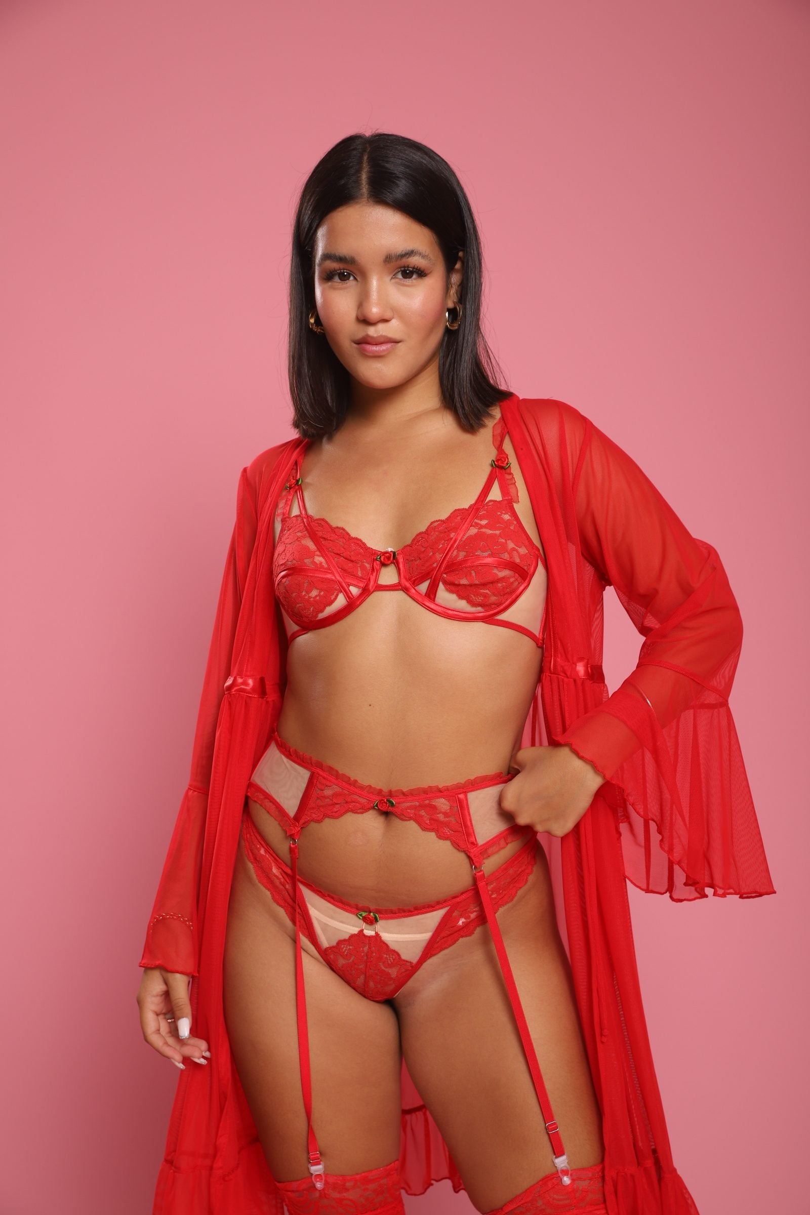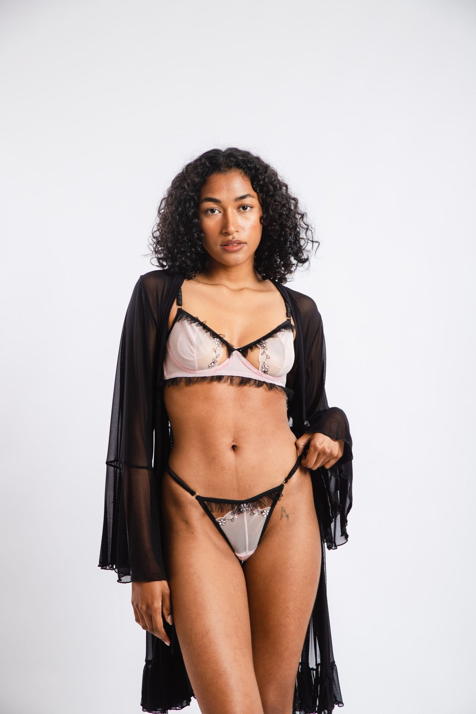 Bata realizada con tul colombiano, con vuelo y lista para combinar tus sets de lenceria.